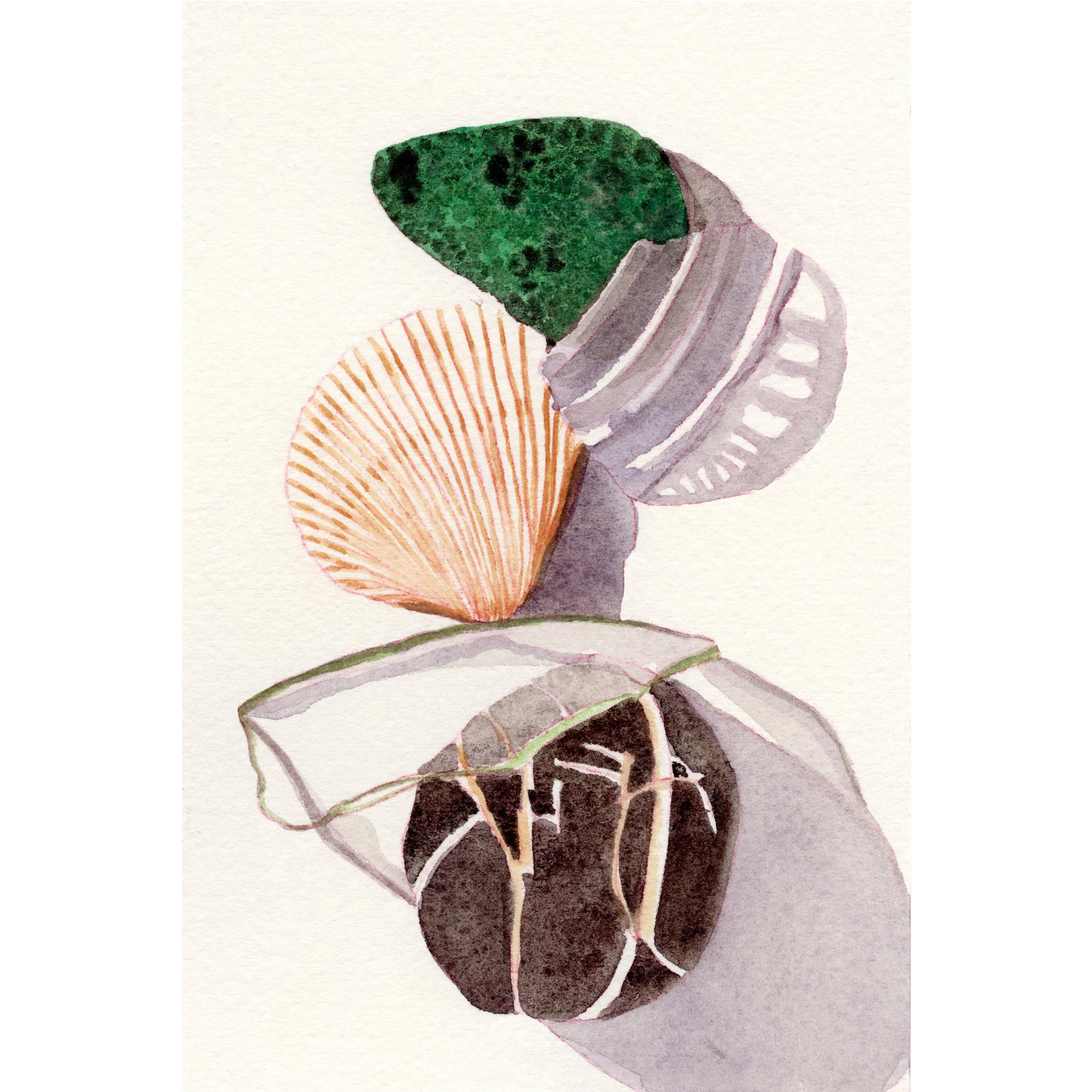 Created while I was an artist in residence on Vashon Island in the Pacific Northwest, this series of still life assemblages capture a moment in time. Depicting beach glass, rocks and worn shells they become a play of abstraction and shadow.